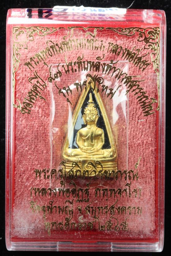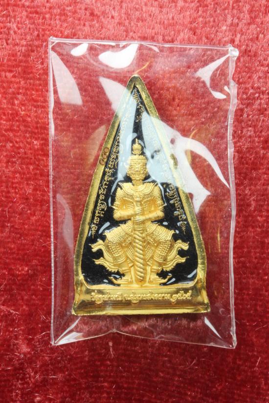 พระพุุทธพิมพ์สามเหลี่ยมพระพุทธโสธร ย้อนยุคปี ๙๗ หลังประทับท้าวเวสสุวรรณ รุ่น พรปีใหม่ /no 541 กะไหล่ทอง ลงยาแดง+ดำ 2 เหรียญ |