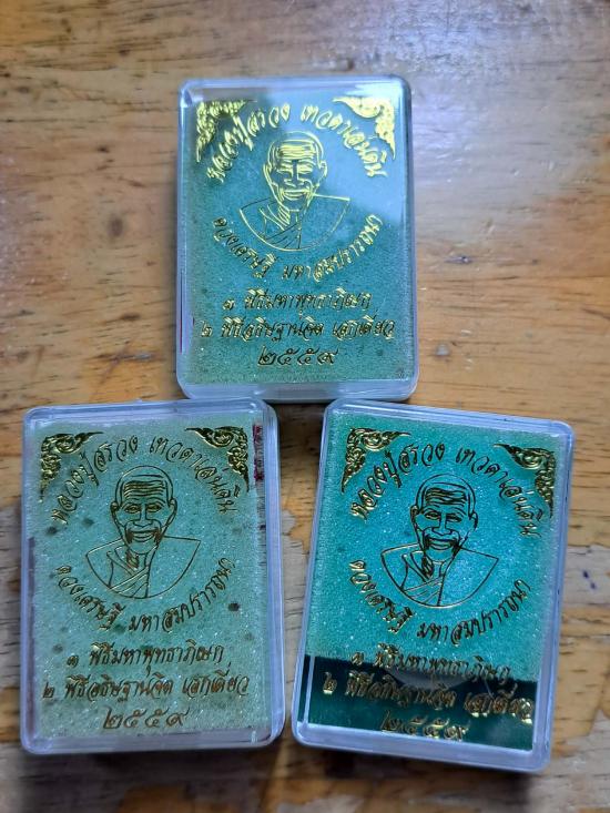พระผงดวงเศรษฐี มหาสมปรารถนา หลวงปู่สรวง เทวดาเล่นดิน ฝังจีวรหลวงปู่สรวง และจีวรหลวงปู่หมุน วัดบ้านจาน จัดสร้างปี 2559 เคาะเดียว 3 องค์