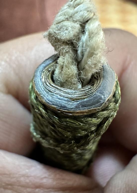 ตะกรุด 3 กษัตริย์ ทองเหลือง ตะกั่ว ทองแดง ขนาด 5 นิ้ว ถักเป็นเชือกคาดเอว เก่าไม่ทราบที่ครับ