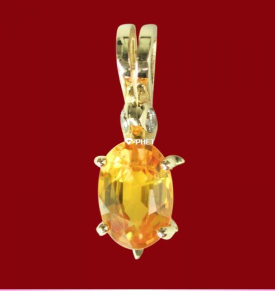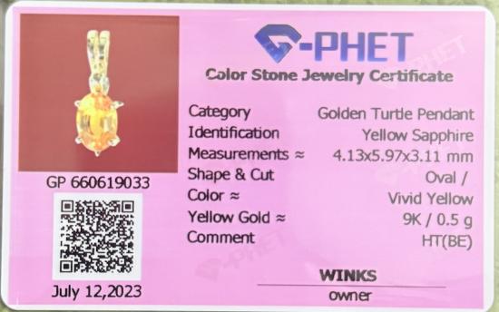 จี้เต่าพลอยบุษราคัม ตาเต่าฝังเพชรแท้ (ทอง 9k/หนัก 0.5 กรัม) |