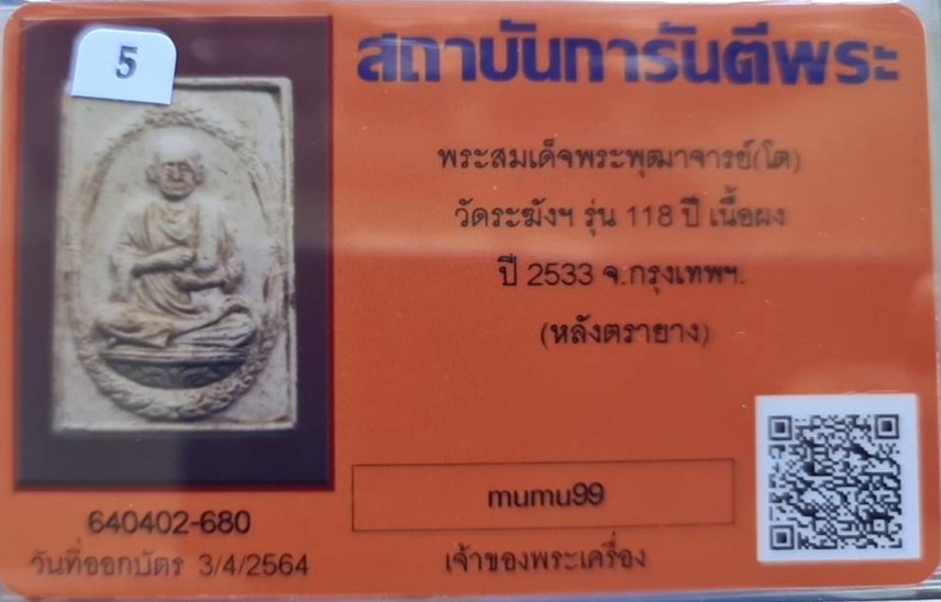 ## สมเด็จวัดระฆัง อนุสรณ์ 118ปี พ.ศ.2533 พิมพ์รูปเหมือน "พระสวยเดิมไม่ผ่านการใช้.หลังปั้มตรายาง...พร้อมบัตรรับรอง.""รับประกันแท้ตลอดฃีพและแท้ตามมาตรฐานสากล....... อนาคตดี ถูกๆเลยครับ.... ราคายังไม่แรง |