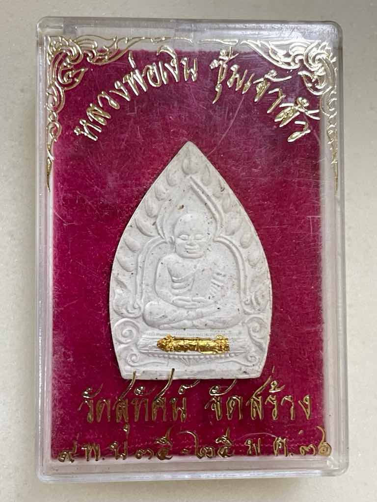 300.- ems เหรียญหลวงพ่อเงิน ซุ้มเจ้าสัว เนื้อผงพุทธคุณ(อิทธิเจ) วัดสุทัศน์จัดสร้าง / เสก วัดบางคลาน - วัดสุทัศน์ ฝังตะกรุดสาริกา เนื้อทองคำ สวยเดิม มีกล่องเดิม สร้างน้อยกว่าเนื้อเงิน,เงินหน้าทองคำ |