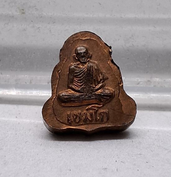 พระปิดตาหลังรูปเหมือน หลวงพ่อเกษม เขมโก เนื้อทองแดง ปี2538 |