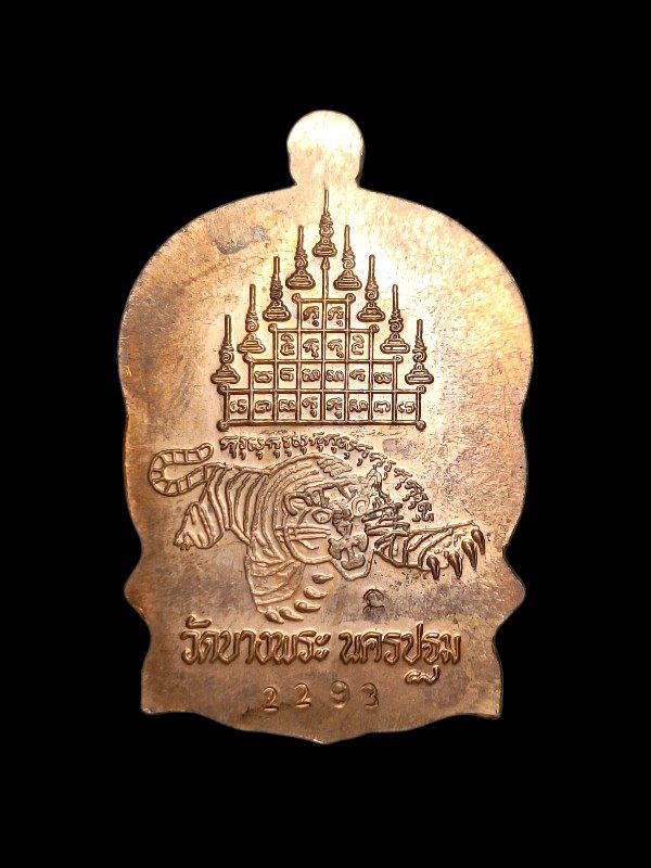 เหรียญนั่งพาน หลังยันต์เก้ายอด หลวงพ่อเปิ่น วัดบางพระ เนื้อทองแดงผิวไฟ ปี37 หมายเลข 2293 |