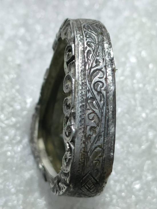 "เคาะเดียว"กรอบเงินใส่พระปิดตา มือ2 สภาพสมบูรณ์ไม่ฉีกไม่ขาด งานเก่าเงินเปอร์เซ็นต์ดีแกะลึก ขนาดสูง 3.7 ซม. ขนาดกว้าง 3 ซม.