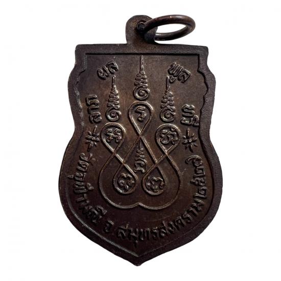 เหรียญเสมาหลวงพ่อเนื่อง วัดจุฬามณี รุ่น "ลาภ ผล พูล ทวี" ปี พ.ศ. 2527 เนืัอทองแดงรมดำ จังหวัดสมุทรสงคราม