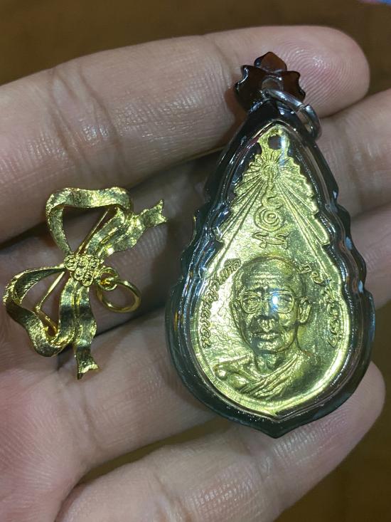 (เลี่ยมใหม่เพื่อเก็บผิวเหรียญ พร้อมโบว์เดิมจากวัด) |