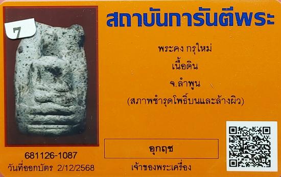 พระคง กรุใหม่ เนื้อดิน จ.ลำพูน พร้อมบัตรรับรองจากจีพระ |