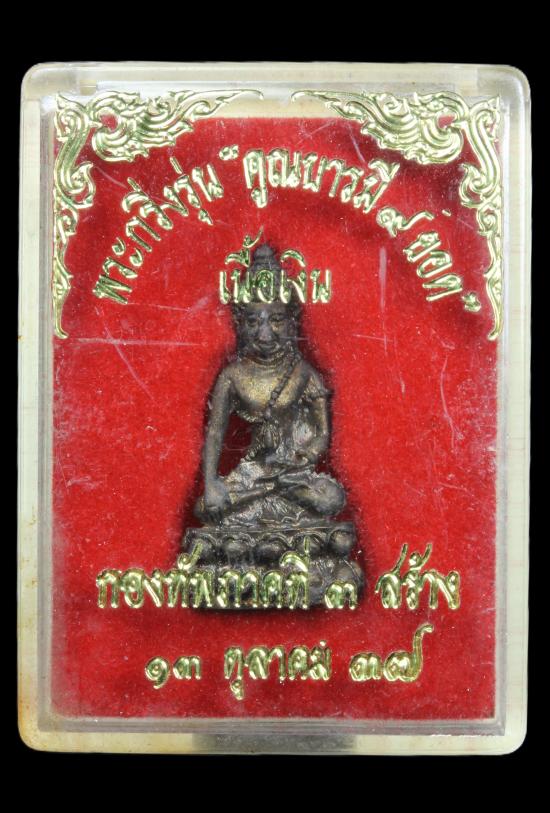 พระกริ่งหลวงพ่อคูณ รุ่นคูณบารมี 9 ยอด เนื้อเงิน สร้างปี 2537 กล่องเดิม
