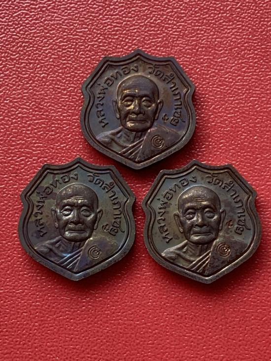 เคาะเดียวแดง หลวงปู่ทวด อาจารย์ทองรุ่นทองบารมี93 เนื้อทองแดงนอกรมดำ 3องค์ |