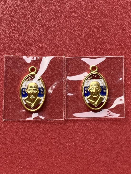 เคาะเดียวแดง เม็ดแตง 2องค์หลวงปู่ทวด รุ่น102ปีอาจารย์ทิม เนื้อชุบทองลงยาสีธงชาติ |