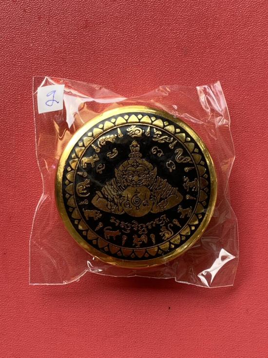 เคาะเดียวแดง สีผึ้งพระราหู รุ่น มงคลจักรวาล เนื้อ โลหะชุบทองลงยาสีดำขอบสีดำ ขนาด 5ซม |
