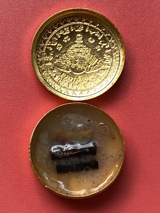 เคาะเดียวแดง สีผึ้งพระราหู รุ่น มงคลจักรวาล เนื้อ โลหะชุบทองลงยาสีดำขอบสีดำ ขนาด 5ซม |