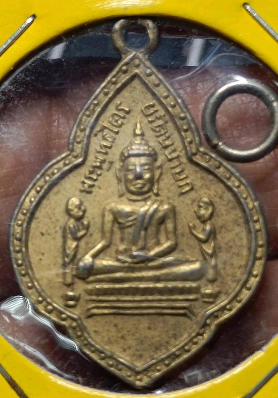 เหรียญพุ่มข้าวบิณฑ์ หลวงพ่อโต วัดพนัญเชิง กะไหล่ทอง อยุธยา ปี 2504 เบาๆครับ