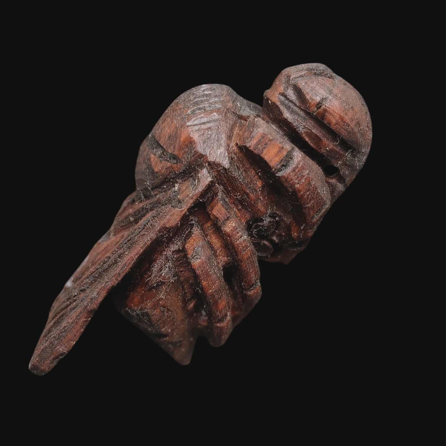 แมลงภู่ไม้ดุมล้อเกวียนเก่า อุดกริ่ง แมลงภู่คำ เป็นเครื่องรางสายพม่า-ไทใหญ่ เด่นด้านเมตตามหานิยม โชคลาภ และป้องกันภัย ขนาด 4.5 ซม |