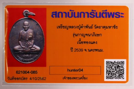 เหรียญหลวงปู่คำพันธ์ วัดพระธาตุมหาชัย รุ่นกาญจนาภิเษก เนื้อทองแดง ปี2539 |
