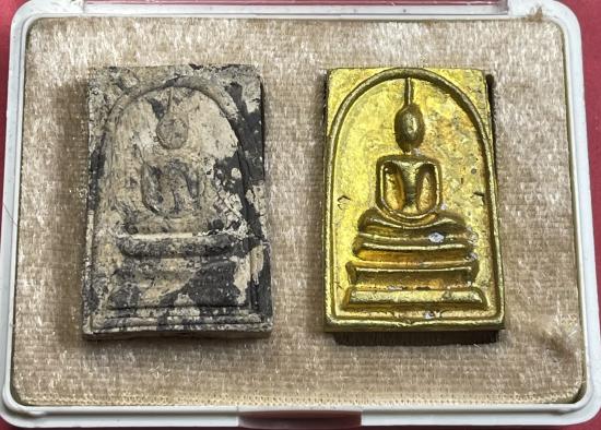 สมเด็จหล่อโบราณเนื้อทองฝาบาตร + สมเด็จเนื้อลายเสือหลังแบบ หลวงปู่แก้ว วัดสะพานแก่น
