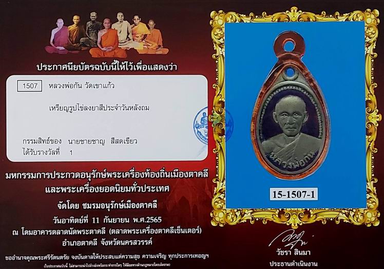 *** เหรียญหลวงพ่อกัน ไข่ลงยาสีประจำวันเกิด หลังลงถม สร้างประมาณปี 2500 ออกวัดเขาแก้ว จ.นครสวรรค์ *** |