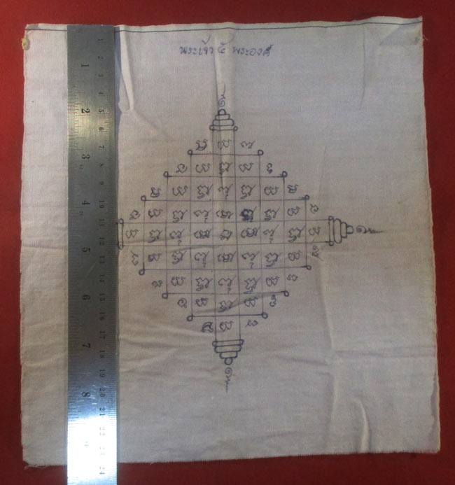 ผ้ายันต พระเจ้า ๕ พระองค์ ไม่ทราบที่ จารยันต์ด้วยมือ ครับ