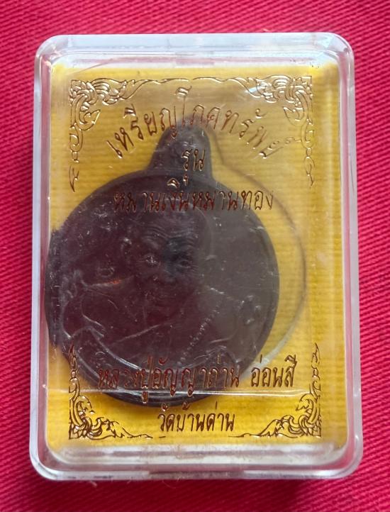 วัดใจไปเลย เหรียญโภคทรัพย์ รุ่นหมานเงินหมานทอง หลวงปู่อัญญาถ่านอ่อนสี วัดบ้านด่าน สปป. ลาว ปี 2562 เนื้อทองแดงรมดำ หมายเลข 970 |