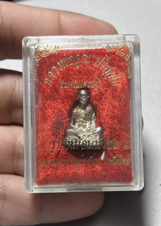 พระกริ่งรูปเหมือนนั่งสมาธิ รุ่นคูณเศรษฐี เนื้อเงิน ปี 37 มหาพุทธาภิเษกวันกองทัพไทย พร้อมกล่องเดิม |