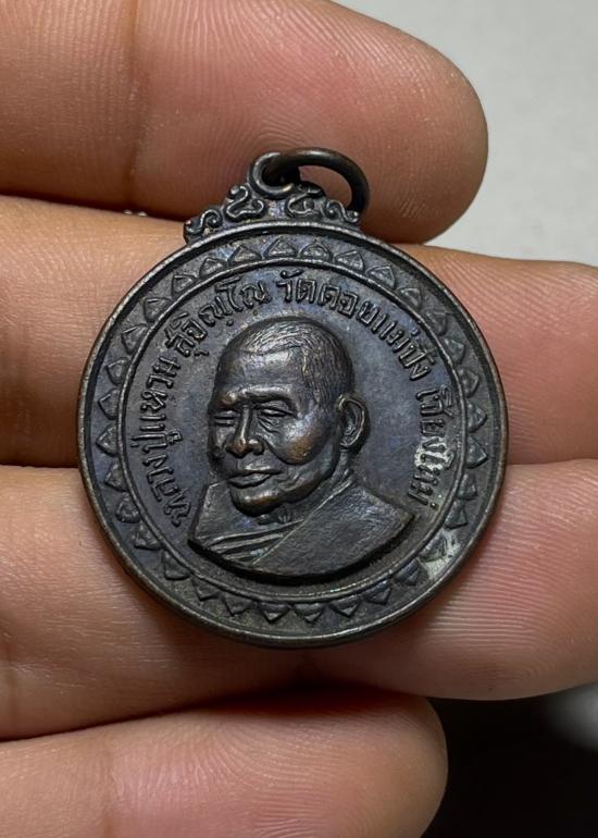 เหรียญหลวงปู่แหวน วัดดอยแม่ปั๋ง จ.เชียงใหม่ รุ่นเขาค้อ เนื้อทองแดงรมดำ ปี 2517 สวยเดิม |