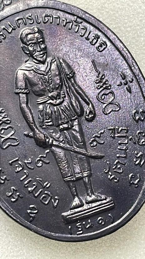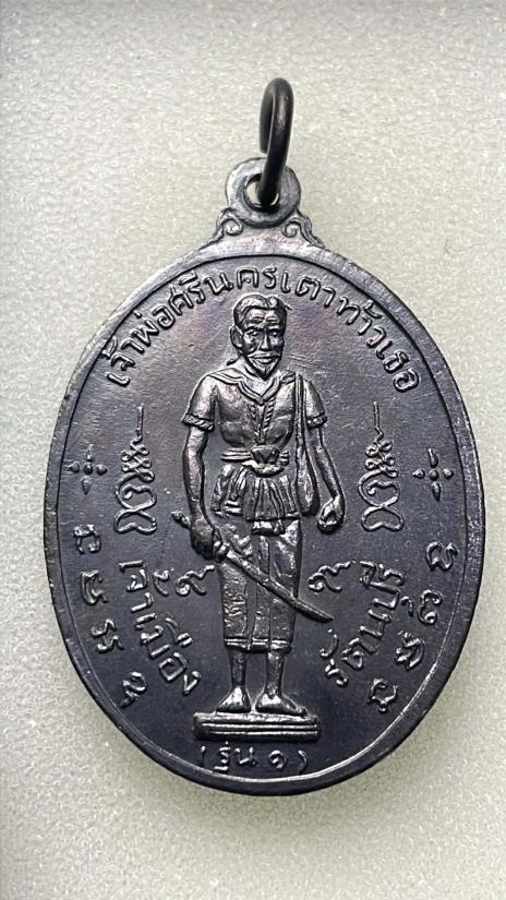 ลักษณะ: เป็นเหรียญรุ่นแรกของเจ้าพ่อศรีนครเตาท้าวเธอ เจ้าเมืองคนแรกของเมืองรัตนบุรี