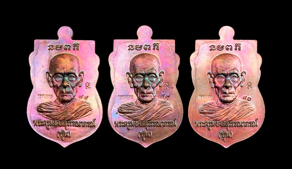 +!!เคาะเดียวllดง ตลอดสาย!!+ (รับ 3 เหรียญ) เสมาหัวโต หลวงปู่ทวด-พ่อท่านซุ่น วัดบ้านลานควาย จ.ปัตตานี รุ่นมงคล88 ปี2558 เนื้อทองแดงผิวรุ้ง เลขเรียงติดกัน เลขเรียงกัน 78/79/80 พร้อมกล่องครับ