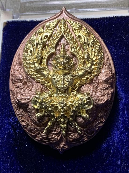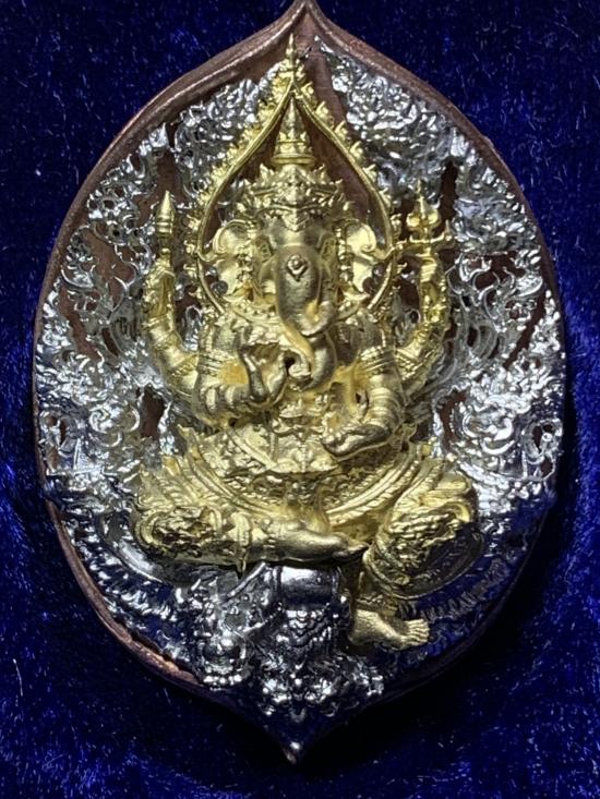 เหรียญหล่อ พระพิฆเนศ-พญาครุฑ จิตสมปรารถนา องค์ทองระฆัง ลายกนกเงินยวง แผน่หลังทองแดงพ่นทราย สวยมาก เคาะเดียวครับ |