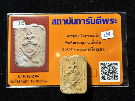 พระพุทธ วัดบางนมโคพิมพ์หนุมาน เนื้อดิน ปี 2527 |
