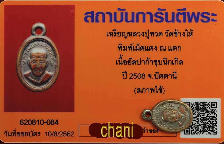 เหรียญ หลวงปู่ทวด วัดช้างให้ พิมพ์เม็ดแตง ณ แตก เนื้ิออัลปาก้า ปี2508 จ.ปัตตานี สภาพกำลังน่ารักน่าใช้หายาก พร้อมบัตรรับรองพระแท้จากจีพระอุ่นใจได้ ไม่ต้องลุ้นค่ะ