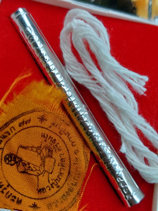 ตะกรุดเงิน ปั๊มจีวรหัวใจเศรษฐีรุ่นแรก 77 ยุคต้น หลวงปู่ศิลา สิริจันโท ,no.8709 |