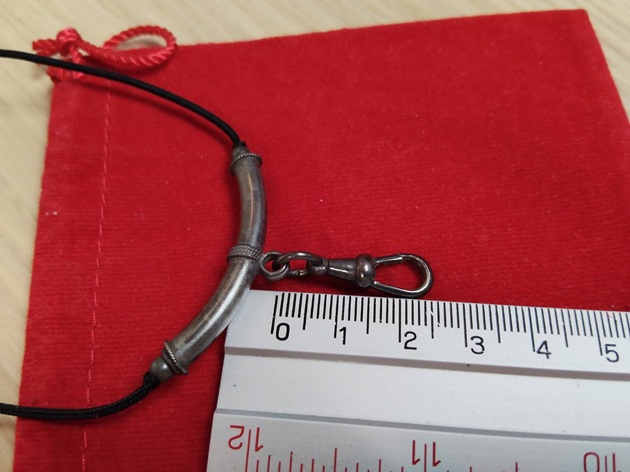 ก้ามปูสปริงเงิน + ตัวโค้งเงิน มือสอง พร้อม สร้อยเชือกสามารถปรับสั้นยาวได้ สภาพดี (ขนาดตามรูป) |