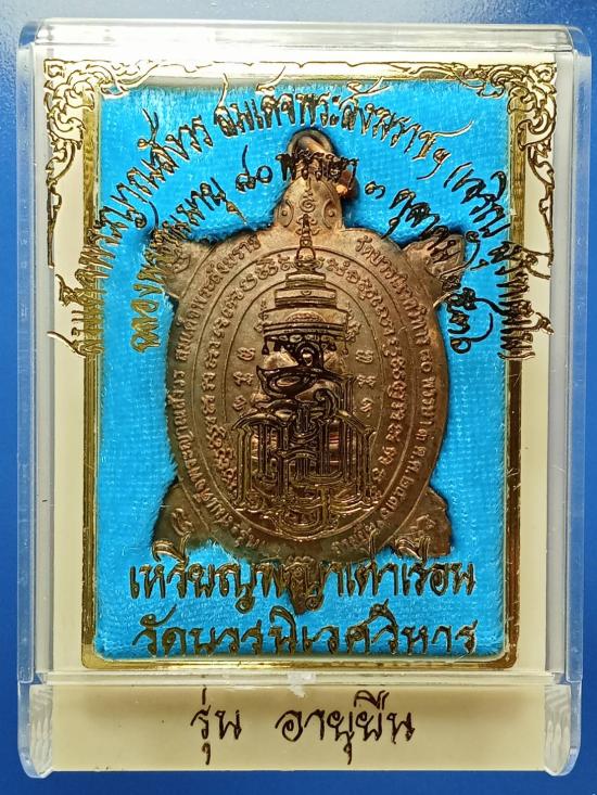 พญาเต่าเรือน รุ่นอายุยืน ฉลองพระชนมายุ ๘๐ พรรษา ๓ ตุลาคม ๒๕๓๖ เนื้อนวโลหะผสมชนวนพระสังกัจจายน์ญส.ปี ๒๕๓๐ (พระสังกัจจายน์ญส.รุ่นแรก ปี ๒๕๓๐ เป็นรุ่นสำคัญมีส่วนผสมของชนวนพระกริ่งบวรรังสี ๒๕๒๘ และชนวนพระกริ่งปวเรศ ๒๕๓๐ ล้วน ๆ โดยไม่มีชนวนพระรุ่นอื่นเจือปนเลย) พิธีพุทธาภิเษก-ชัยมังคลาภิเษก ณ พระอุโบสถวัดบวรนิเวศวิหาร หลวงปู่หลิว ปณฺณโก วัดไร่แตงทอง เทพเจ้าแห่งพญาเต่าเรือน ร่วมปลุกเสกในพิธี หลวงพ่อเปิ่น หลวงพ่อแย้ม วัดสามง่าม หลวงพ่อพูล วัดไผ่ล้อม หลวงพ่อไสว วัดปรีดาราม หลวงพ่อแช่ม วัดดอนยายหอม หลวงพ่อยิด วัดหนองจอก หลวงพ่อสง่า วัดบ้านหม้อ ฯลฯ ร่วมพิธี เคาะเดียว พระมาพร้อมกล่องเดิม ตอกโค๊ต ซิ่ว ภาษาจีน ที่แปลว่าอายุยืนโดยตอกคนละฝั่งกับเนื้อทองแดงเป็นการจำแนกเนื้อหา
