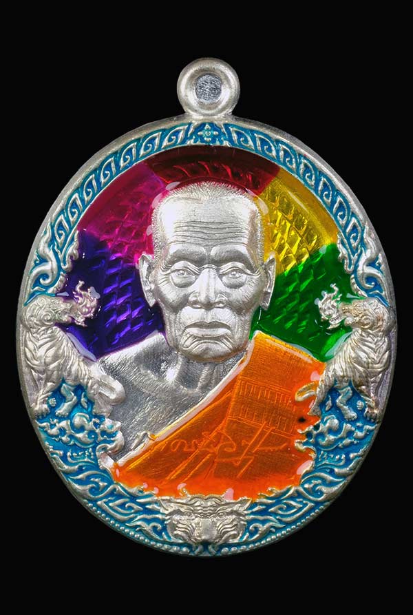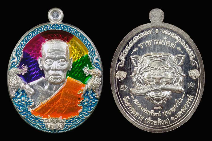เหรียญราชาพยัคฆ์ (เสือ 2 ป๋อง สุพรรณ) เนื้อเงินลงยา หลวงพ่อพัฒน์ วัดห้วยด้วน นครสวรรค์
