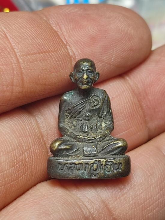 รูปหล่ออุดกริ่งรุ่นแรก หลวงปู่เย็น วัดสระเปรียญ อ.สรรคบุรี จ.ชัยนาท เนื้อทองแดงรมดำ สร้างเมื่อปี2522