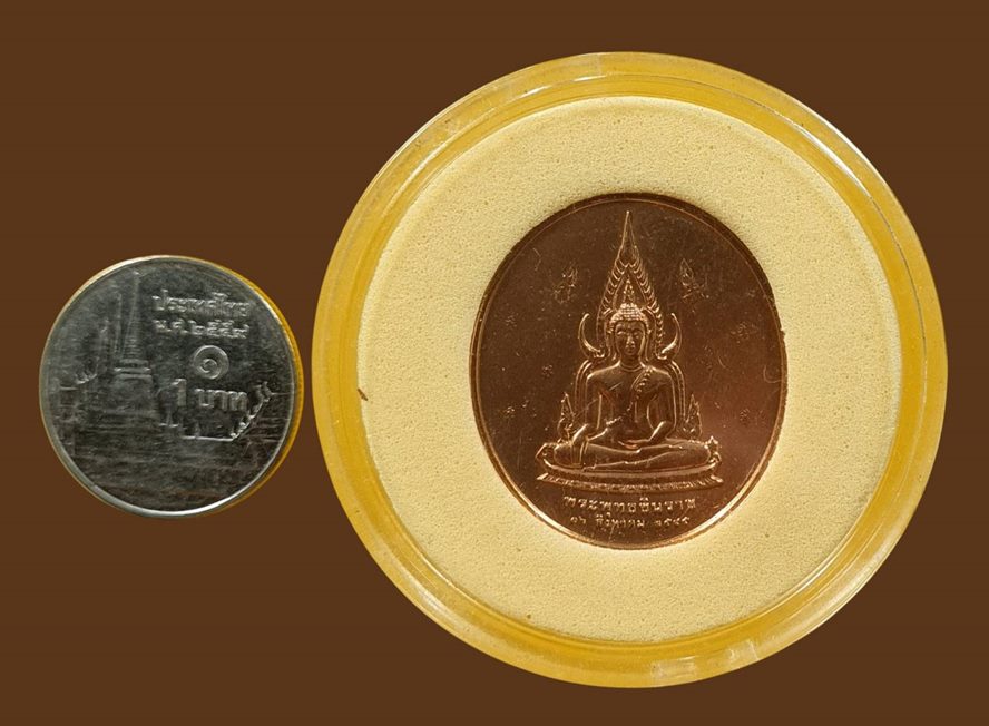 ลักษณะ: ด้านหน้าเป็นรูปจำลองพระพุทธชินราช ด้านหลังเป็นพระนามาภิไธยย่อ ส.ก.