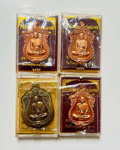 วัดใจ เหรียญเสมาที่ระลึกฉลองอายุวัฒนมงคล รุ่นครบ 7 รอบ หลวงพ่อโปร่ง โชติโก วัดถ้ำพรุตะเคียน จ.ชุมพร 4 เหรียญ |