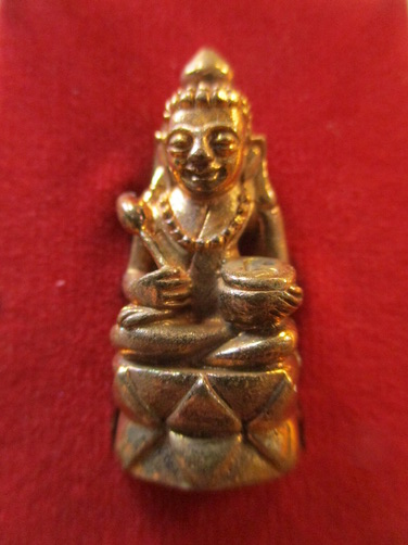 กริ่งตั๊กแตนพระอูปคุปต์มหาลาภนั่งบัวเนื้อทองแดงนอกขัดเงา หลวงปู่คำพันธ์ วัดธาตุมหาชัย จ.นครพนม ปี 2545 ผิวไฟสวยมากๆ