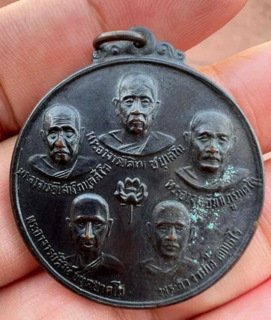 เหรียญ 5 บูรพาจารย์ สายป่ากรรมฐาน วัดบูรพา อุบลราชธานี ปี 2515 ทองแดงรมดำ