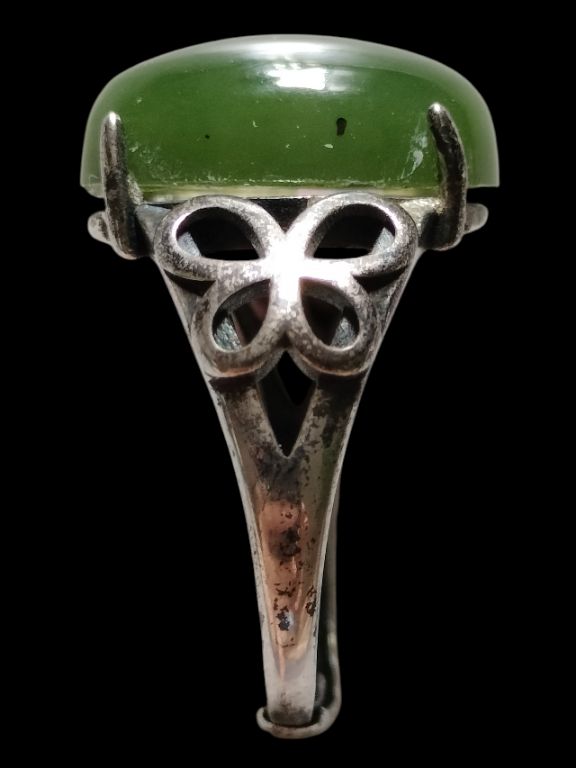 หัวแหวนหยก ( เม็ดใหญ่พิเศษ ยุคต้น หยกก้อนแรก ) ตัวเรือนเนื้อเงินแท้