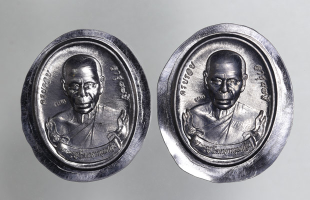 เหรียญโบว์ ผูกพัทธสีมา ปี58 เนื้อตะกั่วไม่ตัดปีก 2องค์ หลวงพ่อสิน วัดละหารใหญ่ |