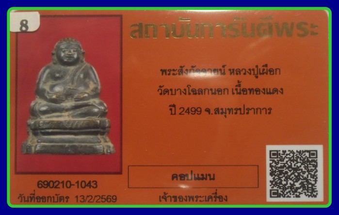 พิมพ์ใหญ่สุด +บัตรการันตี-1500-พระสังกัจจายน์ ลป.เผือก ออกวัดบางโฉลง จ.สมุทรปราการ พศ.2499