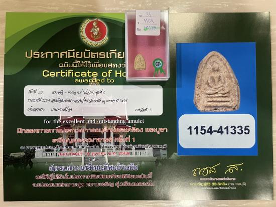 สร้างปี 2495 สภาพสวย สมบูรณ์ ไม่หักไม่ซ่อม รับประกันพระแท้ ดูง่าย ใบประกาศรางวัลที่3งานสมาคม |