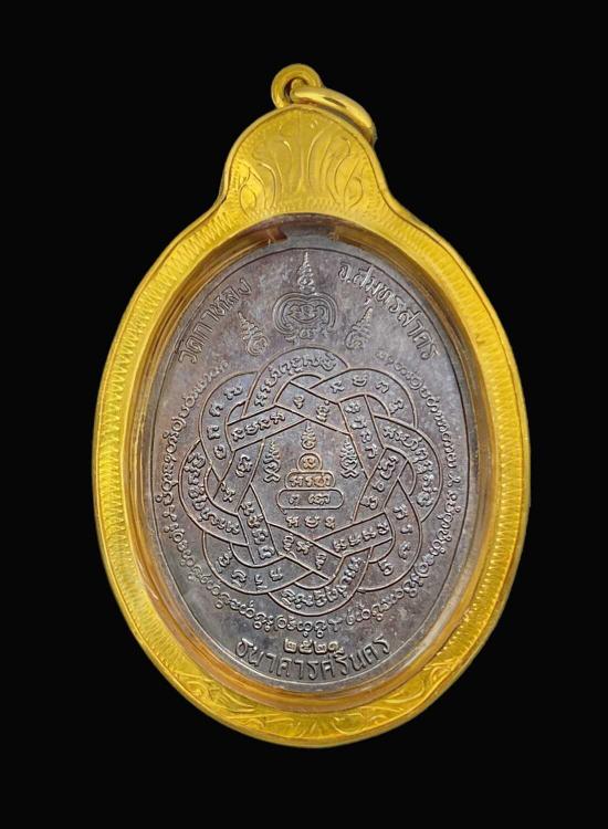 หลวงพ่อสุด วัดกาหลง รุ่นธนาคารศรีนคร(เสือเผ่นศรีนคร)เนื้อทองแดง ปี2521 พร้อมเลี่ยมกรอบทองคำน้ำหนัก 1.8กรัม(เปอร์เซ็นต์ทอง 70-80 เปอร์เซ็นต์)