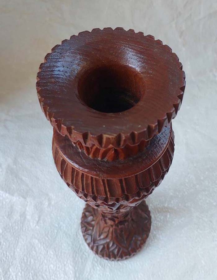 ***วัดใจ***แจกันไม้จันหอมแกะสลัก สภาพดีสวย ขนาดกว้าง 9 ซม. สูง 30 ซม.