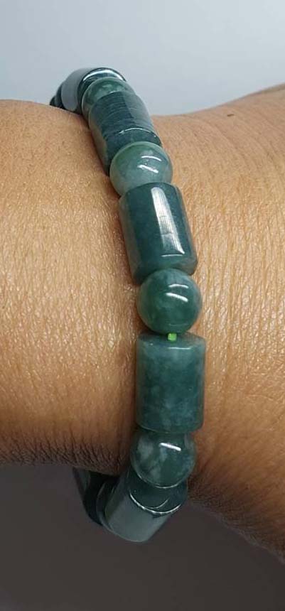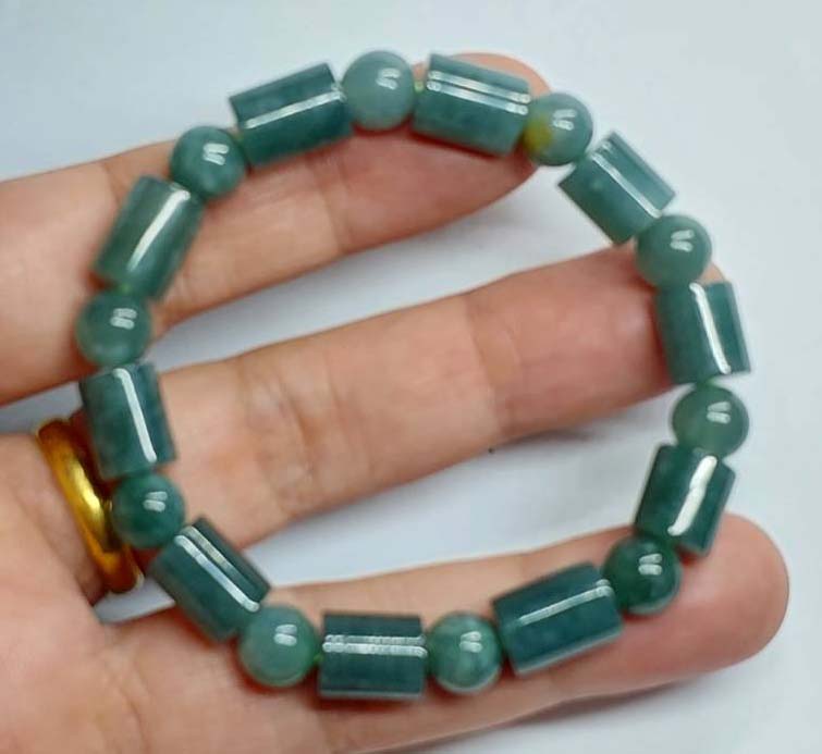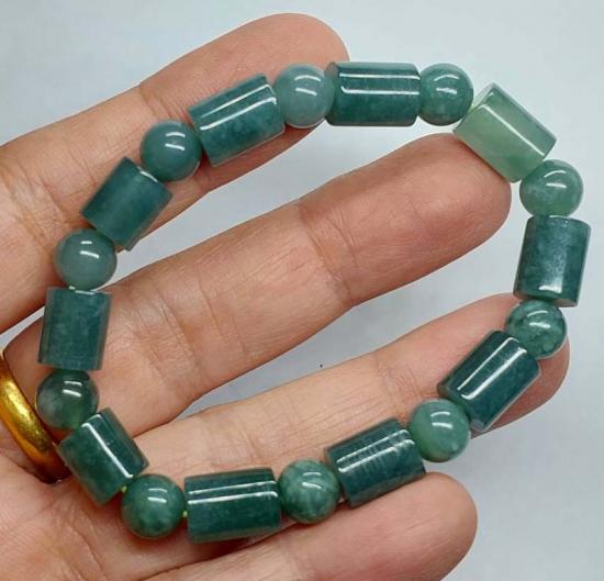 สร้อยข้อมือหยกพม่า สีโทนบลูสลับเขียว เม็ดกลมสลับทรงกระบอก ขนาด 7 มิล |