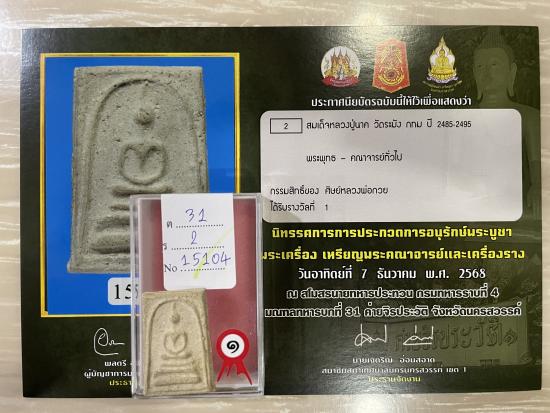 สร้างปี 2495 สภาพสวย สมบูรณ์ ไม่หักไม่ซ่อม รับประกันพระแท้ ดูง่าย ใบประกาศรางวัลที่1งานสมาคม |