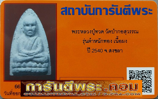 ชื่อพระเครื่อง หลวงปู่ทวด วัดป่ากอสุวรรณาราม รุ่นตำหนักทอง เนื้อผงขาว ปี2540