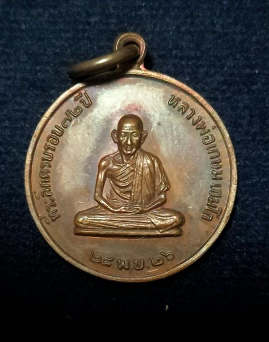 เนื้อทองแดงรมน้ำตาล จัดสร้างเมื่อวันที่ 28 พฤษจิกายน พ.ศ.2526 เนื่องในโอกาสเจริญอายุครบ 6รอบ 72พรรษา และสมทบทุนสร้างโรงพยาบาลสงฆ์ |